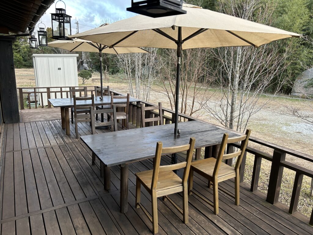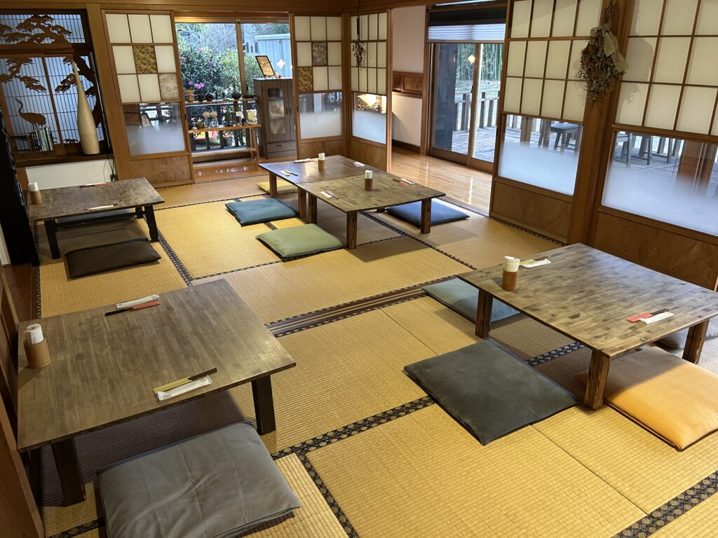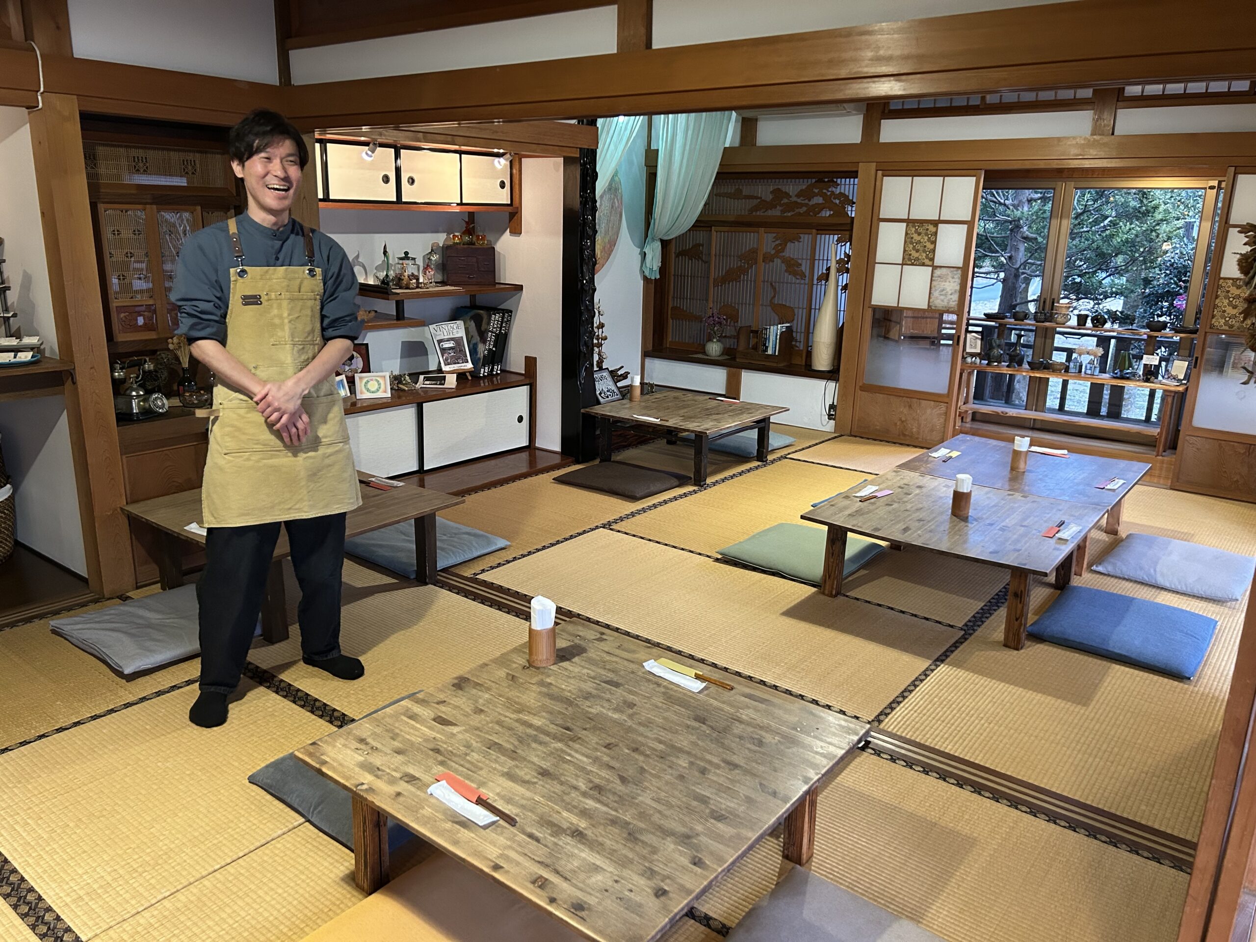 元々はイタリアンバルを開業する予定だったが、店主の家族が運営に協力したいということで昼営業の業態に変更。物件を探していたところ現在の古民家が見つかり、ほぼそのままの状態で利用している。店舗面積は350坪。席数は座敷=14席、個室=4席、テラス=8席。駐車場は複数台完備。